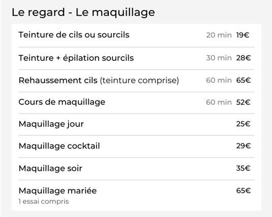 Conseils et maquillages minutes gratuit selon disponibilités des maquilleuses.